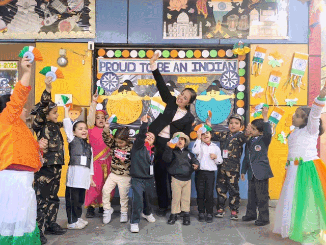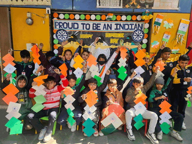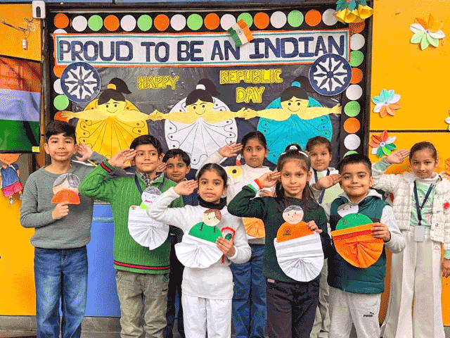 Cambridge World School, Janak Puri celebrated Republic Day with great enthusiasm and patriotic spirit. The celebration began with the hoisting of the National Flag followed by the National Anthem. Students from Nursery to Class V actively participated by presenting patriotic songs and speeches highlighting unity and national pride. Teachers addressed the students and encouraged them to follow the values of the Constitution. The celebration concluded on a joyful and inspiring note.